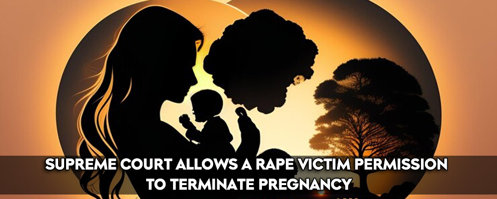 - The Supreme Court allowed the rap survivor to terminate her 7-week pregnancy. The Apex Court ordered the girl to terminate the pregnancy and to visit a hospital in Bharuch so that the procedure could be done. After the medical tests conducted by the Hon’ble Supreme Court, the rape victim was declared fit to undergo a medical procedure.