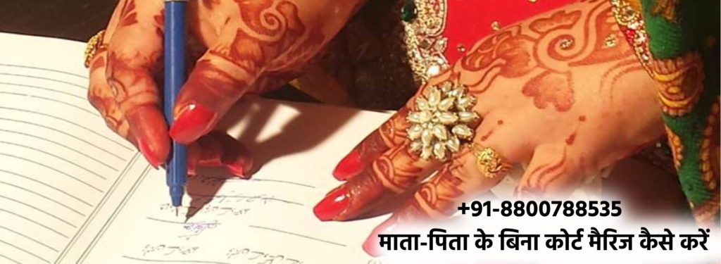 शादी किसी के जीवन के सबसे अच्छे पलों में से एक हो सकती है। आमतौर पर हर कोई इस पल को अपने माता-पिता के साथ सेलिब्रेट करना चाहता है। लेकिन, कभी-कभी माता-पिता अपने बच्चे को उनके प्यार से शादी करने में मदद करने के लिए सहमत नहीं होते हैं। इसके पीछे बहुत सारे कारण हो सकते हैं – विभिन्न जाति/धर्म, सामाजिक स्थिति में अंतर, दहेज की मांग आदि। आप घबराइए नहीं आप माता-पिता के बिना कोर्ट मैरिज कर सकते हो बिना किसी नोटिस के और बिना किसी गवाह के!